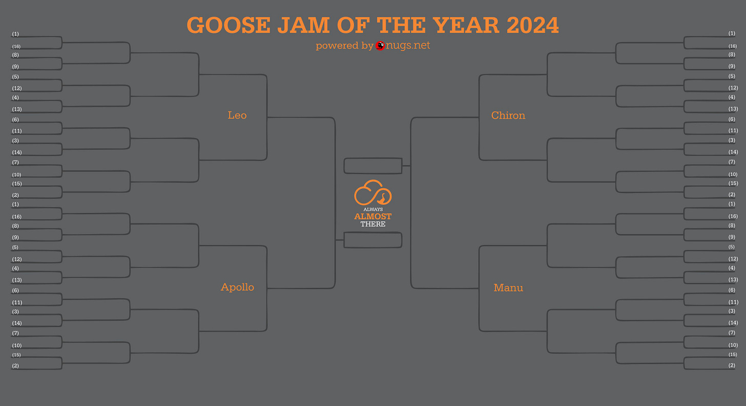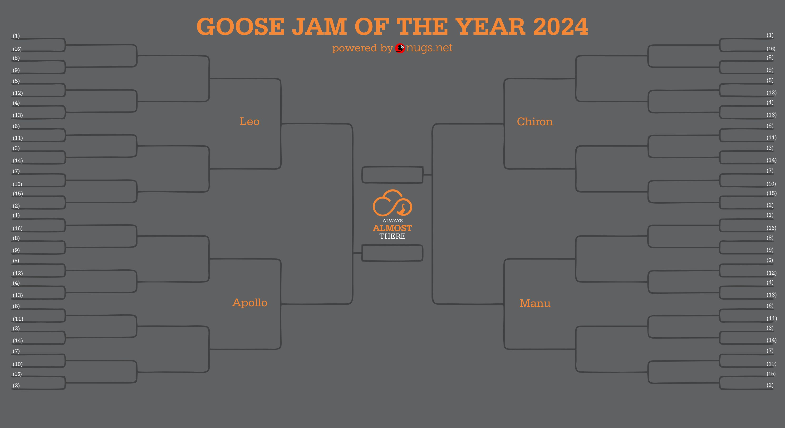 HAPPY NEW YEAR! Bracket season has officially arrived!! Always Almost There is so excited to be bringing you the fifth annual Goose Jam of the Year Bracket, and after such a banner year for the band we know it’s going to be a great contest!